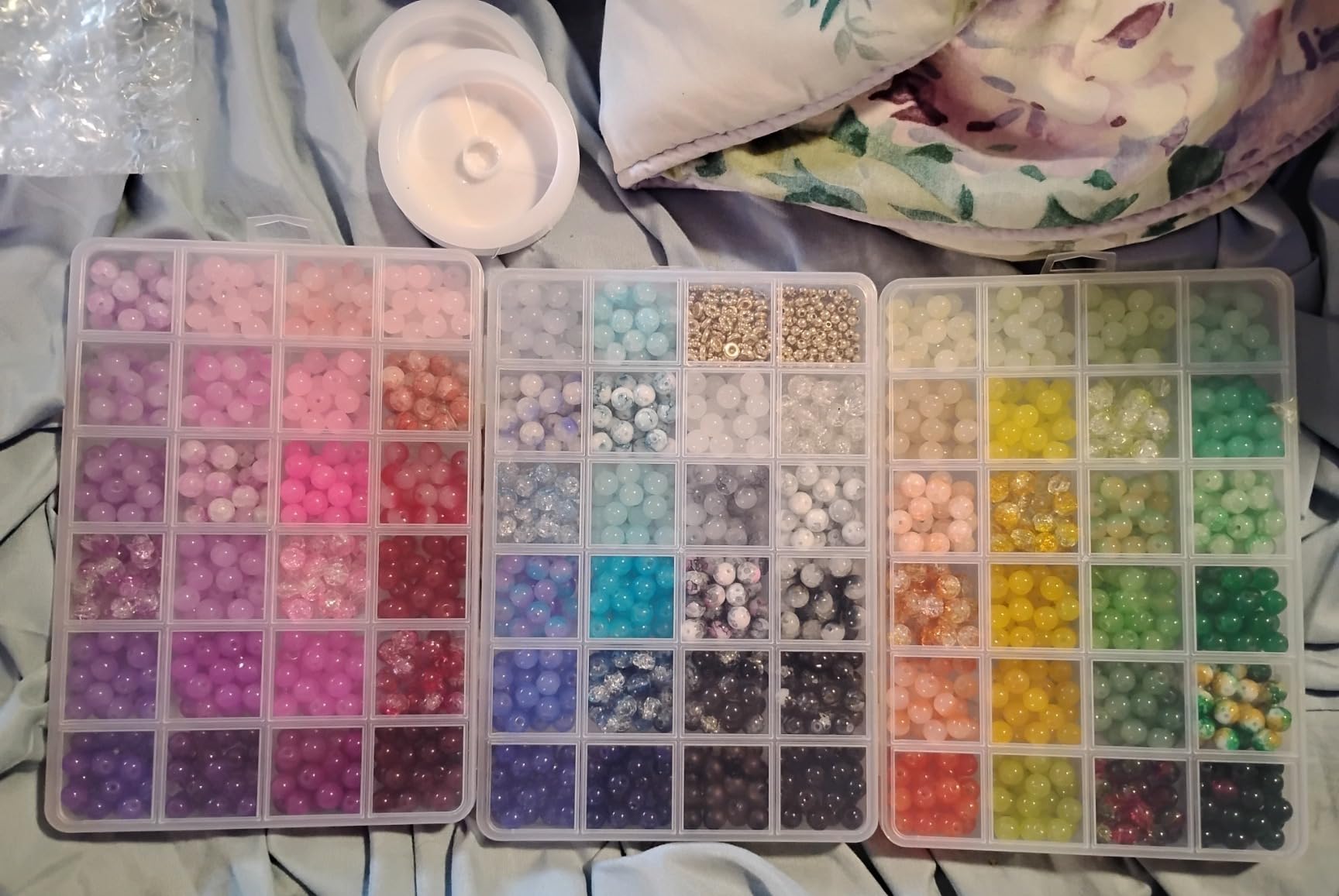 Bead kits include charms, spacers, and alphabet beads, perfect for bracelets, necklaces, or keychains.