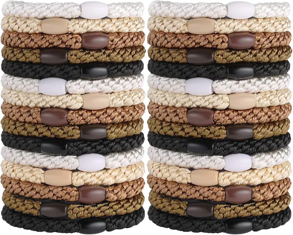 Funtopia’s 30 Pcs Hair Ties for women and girls are designed for thick hair, offering no-damage, no-crease hold. Available in black, brown, white, beige, and coffee, these elastic bands are durable and gentle. Perfect for daily styling or crafting, they provide reliable comfort and versatility.
