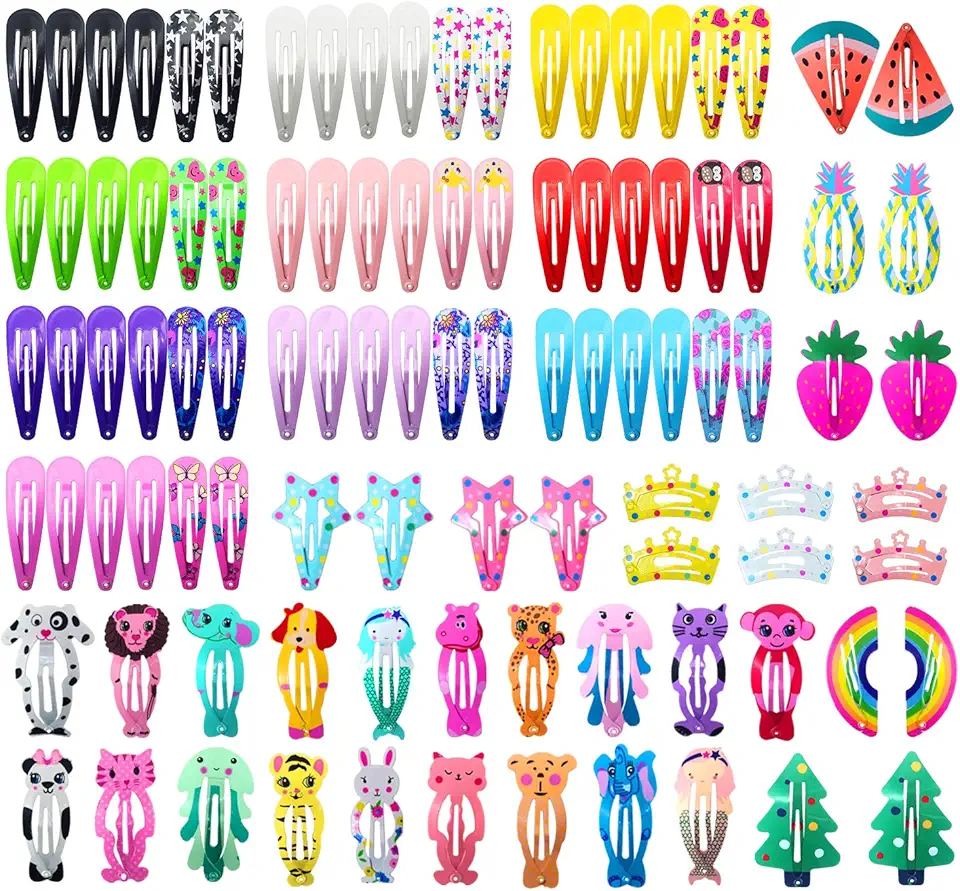 Funtopia’s 100 Pcs Hair Clips for girls feature no-slip metal snaps in cute candy-colored designs like animals, fruits, crowns, and stars. Perfect for kids, teens, or women, these durable clips hold hair securely without damage. Ideal for daily wear or adding flair to any hairstyle.